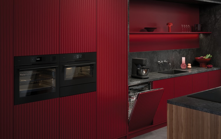 The AEG kitchen range embodies modern, sleek design, available in matte or glossy black. With signature metal handles, bold trims, and a refined graphic identity, it delivers a timeless look that integrates seamlessly into any kitchen.